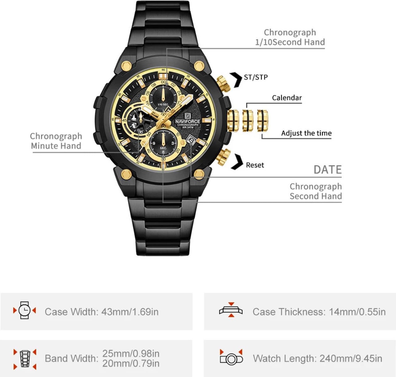 - Feature : Date, Chronograph